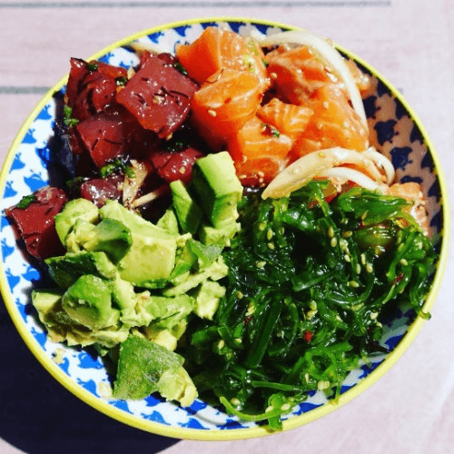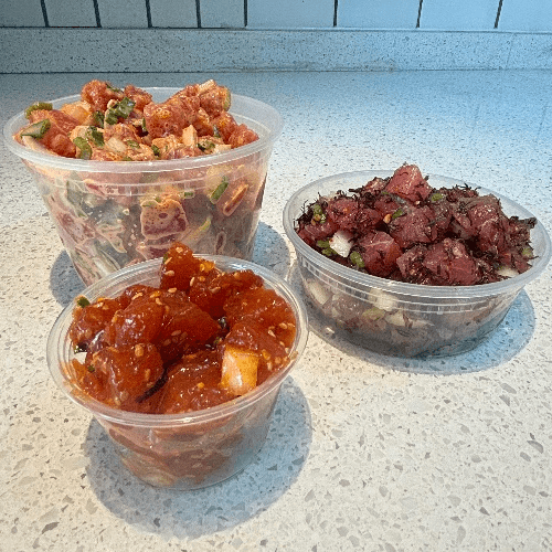 1 base, 2 poke, 2 sides, and Hawaiian sun drink