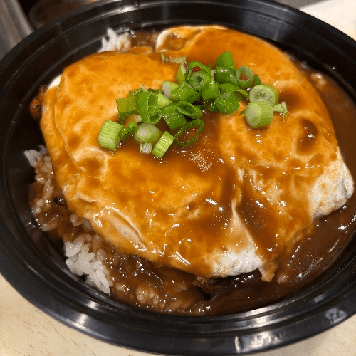 Our grilled huli chicken over rice and two eggs smothered in gravy