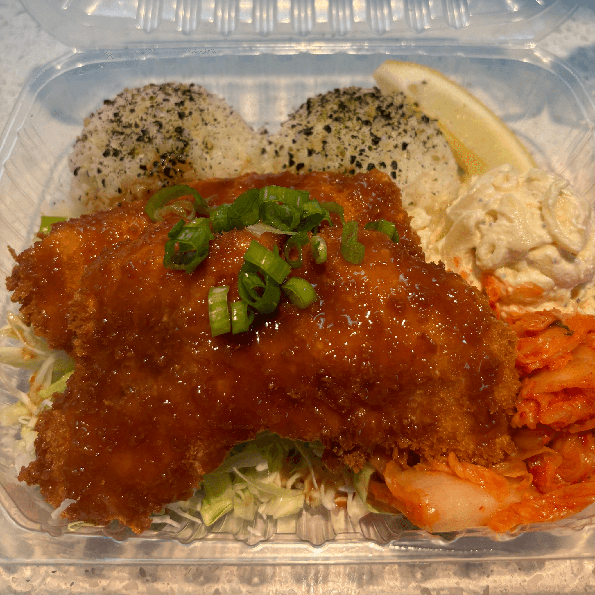 Panko crusted salmon fried and drizzled with our teriyaki sauce